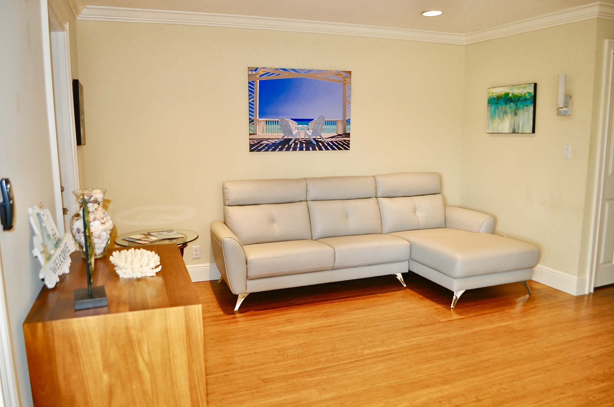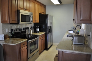 The completely renovated condo contains all of the following: 2 bedrooms(1 queen bed and 1 full bed), a sleeper sofa and two 2 bathrooms. Full kitchen with granite tops and Stainless Steel appliances. Kitchen is fully stocked with all utencils, cookware, dishes, Keurig Coffee machine and more. Cable TV with HD flat panel TV's and Free Wifi included. Unit is on the second floor, just steps away from the beach and beach front heated pool/deck. There is a pay laundry room with washers and driers directly across the parking lot.